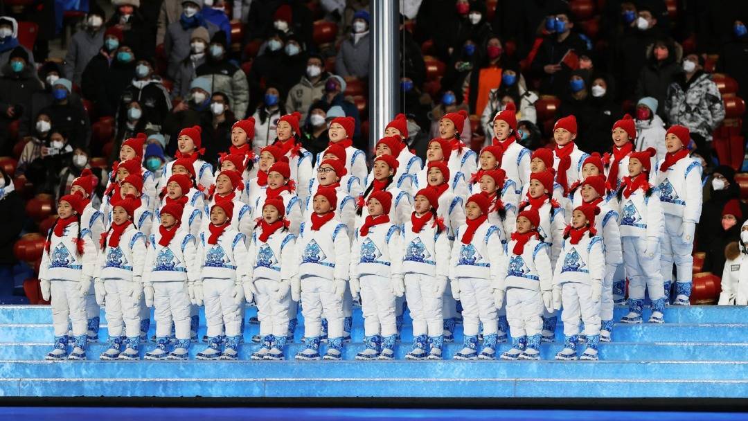 马兰花合唱团在北京冬奥会开幕式上表演。