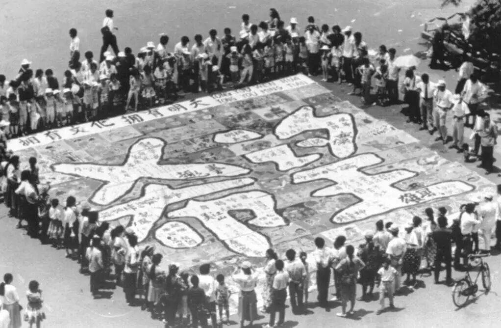 1992年6月1日,湖南省长沙市百名少年儿童集体创作的“希望工程”巨幅书画作品。