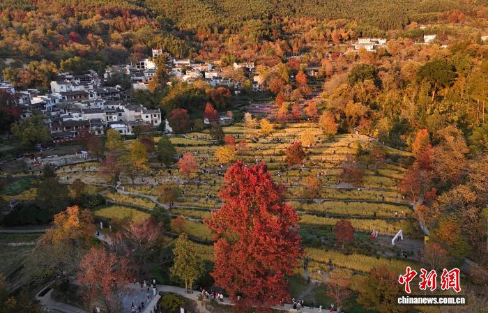 2024年11月11日,初冬时节,黄山市黟县塔川村景色斑斓。(资料图 无人机照片) 中新社记者 韩苏原 摄